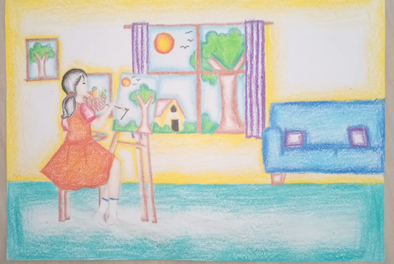 Make a drawing/painting bout your favourite hobby or activity -- reading, playing, gardening, painting, etc. -- while at home during the lockdown days.