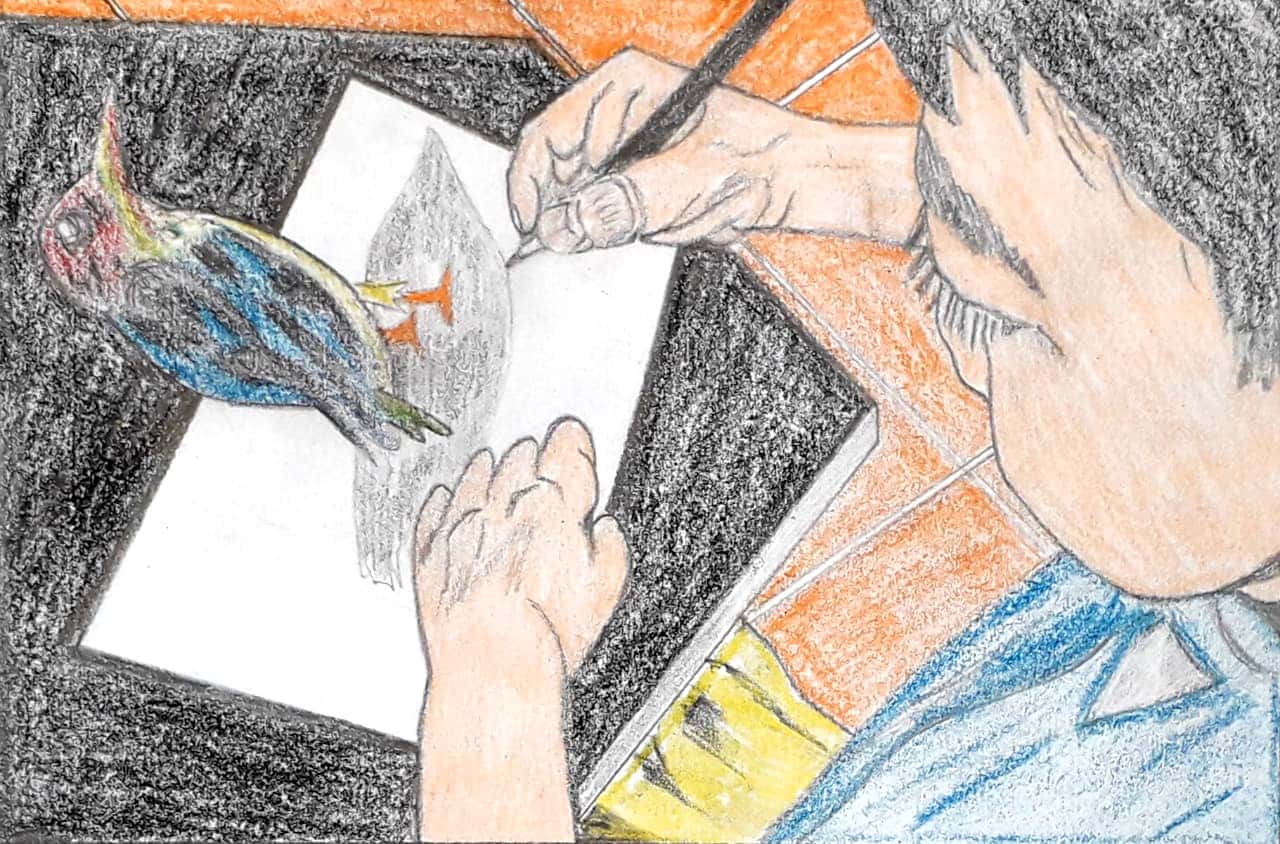 Make a drawing/painting bout your favourite hobby or activity -- reading, playing, gardening, painting, etc. -- while at home during the lockdown days.