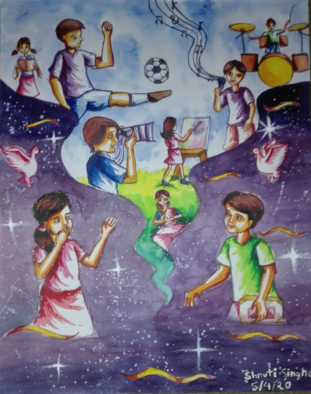 Make a drawing/painting bout your favourite hobby or activity -- reading, playing, gardening, painting, etc. -- while at home during the lockdown days.