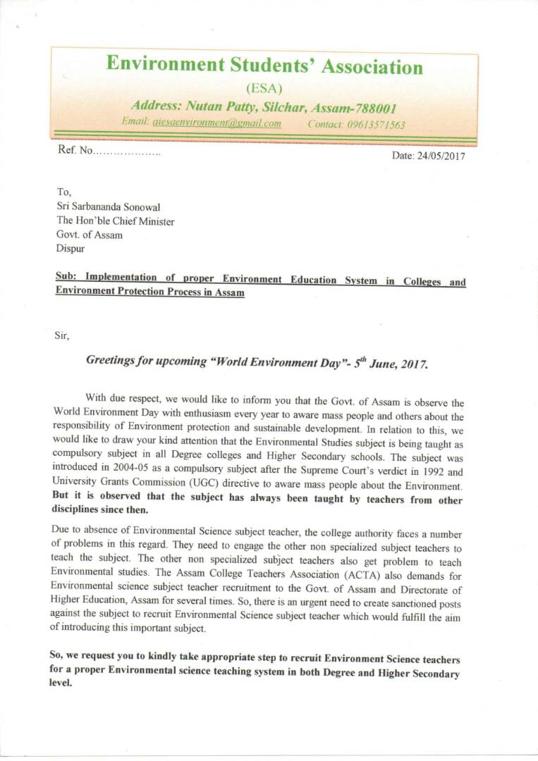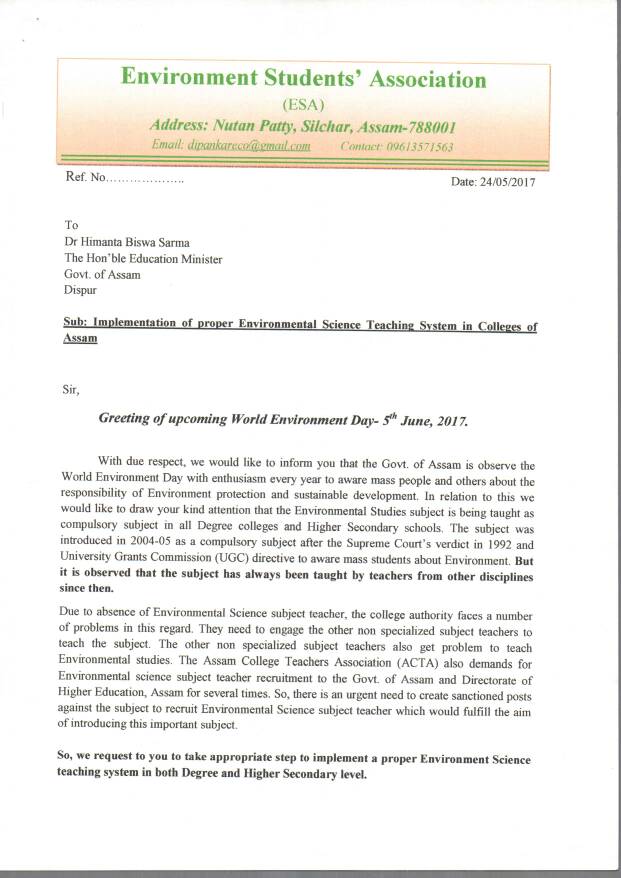 ENVIRONMENT STUDENTS ASSOCIATION, ASSAM
