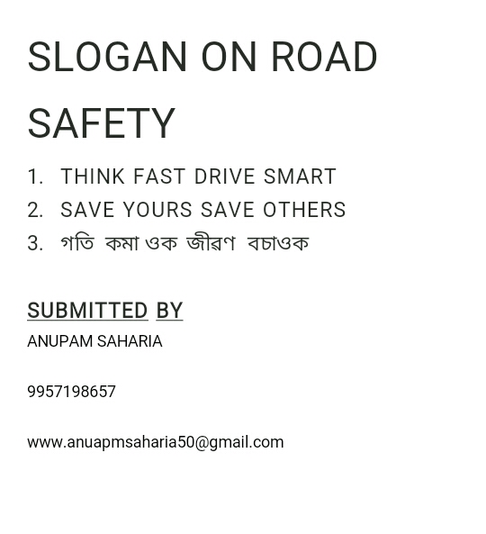পথ সুৰক্ষা সন্দৰ্ভত শ্লোগান প্ৰতিযোগিতা