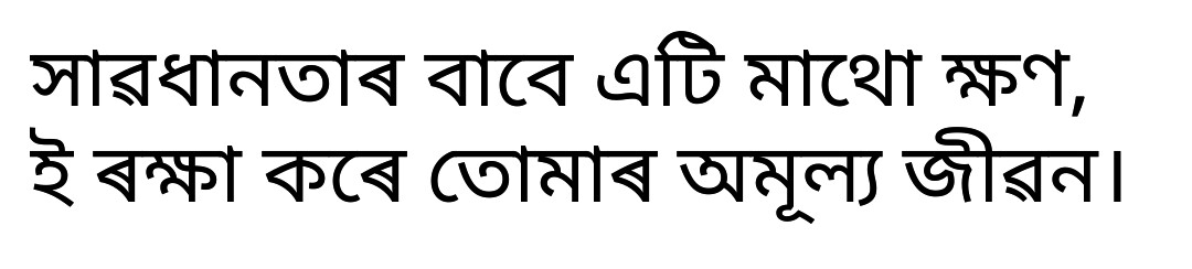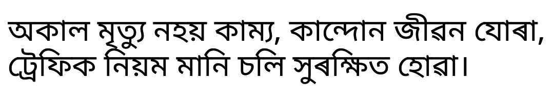 অকাল মৃত্যু নহয় কাম্য,কান্দোন জীৱন যোৰা, ট্ৰেফিক নিয়ম মানি চলি সুৰক্ষিত হোৱা।