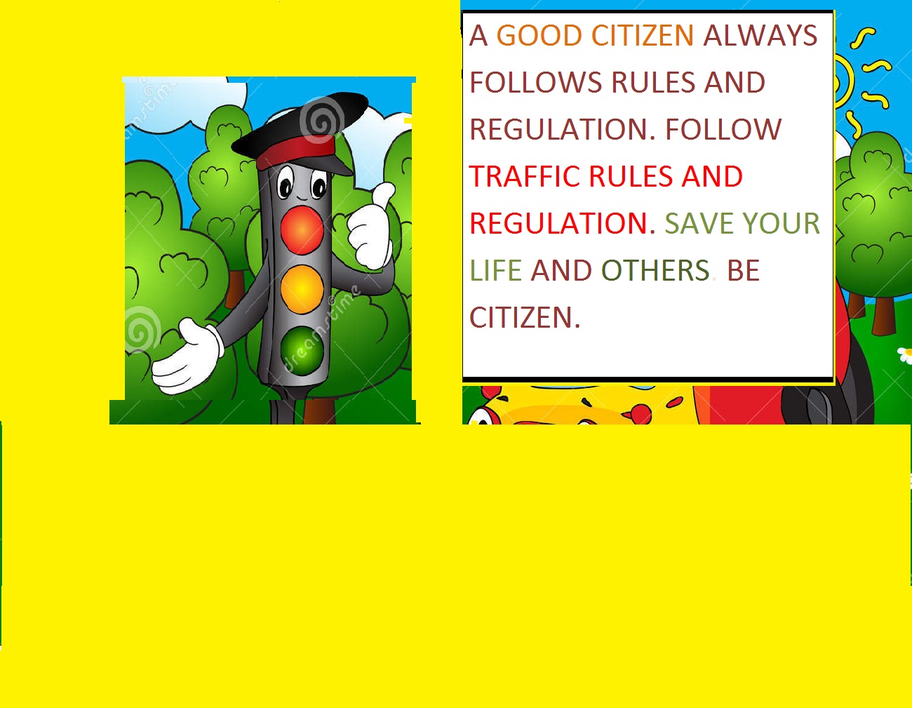 A GOOD CITIZEN ALWAYS FOLLOWS RULES AND REGULATION. FOLLOW TRAFFIC RULES AND REGULATION. SAVE YOUR LIFE AND OTHERS. BE CITIZEN.